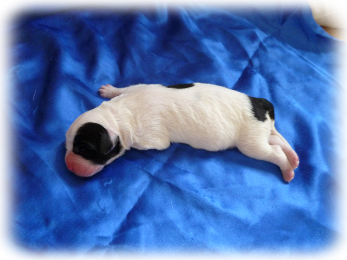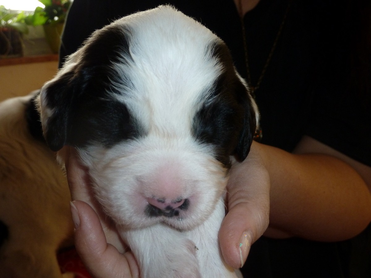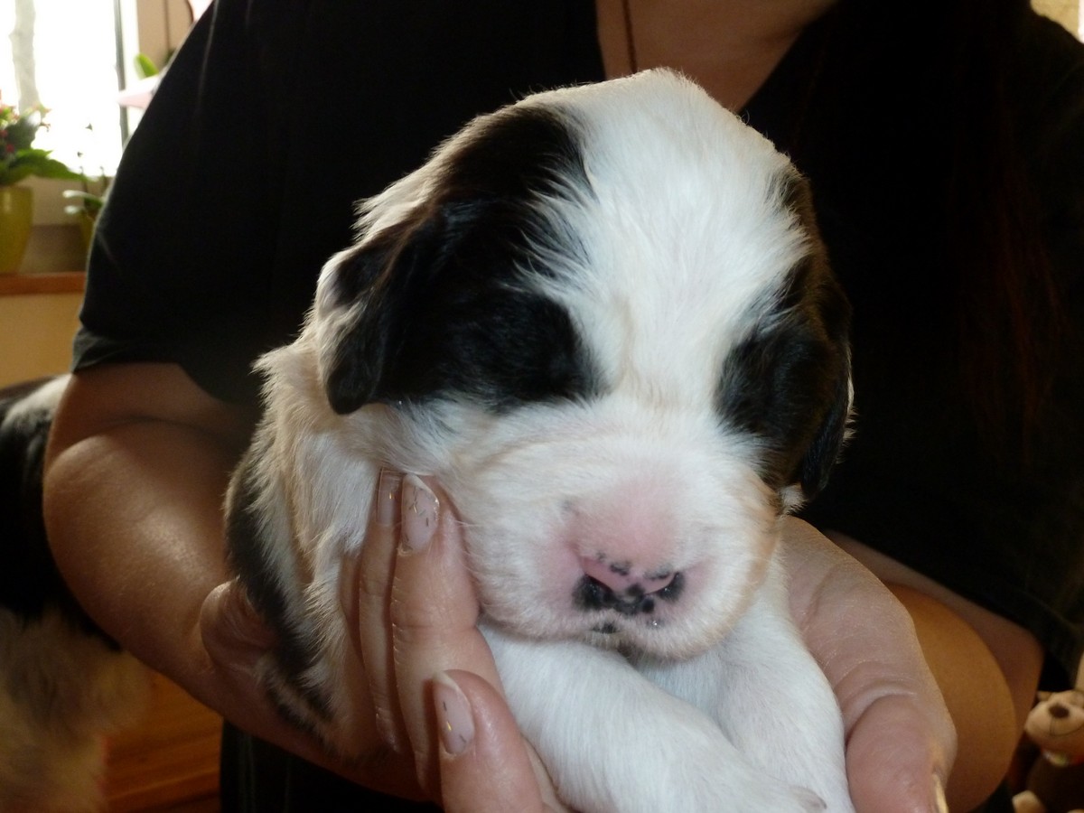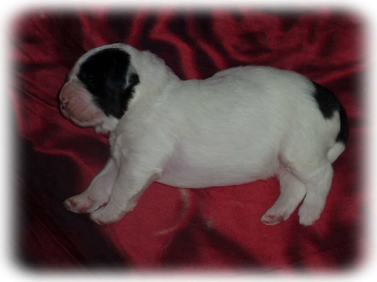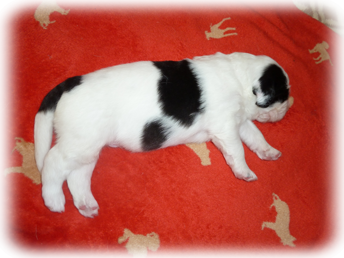 Hier ein paar Fotos von Landseerwelpe Nummer 1 im Alter von 1 Woche.