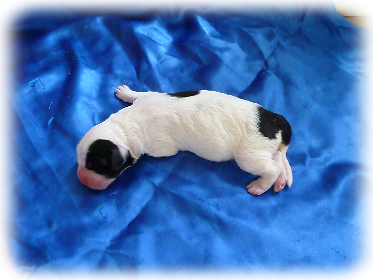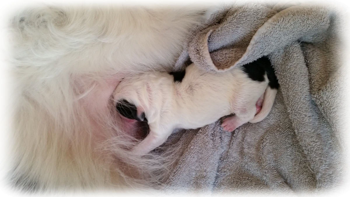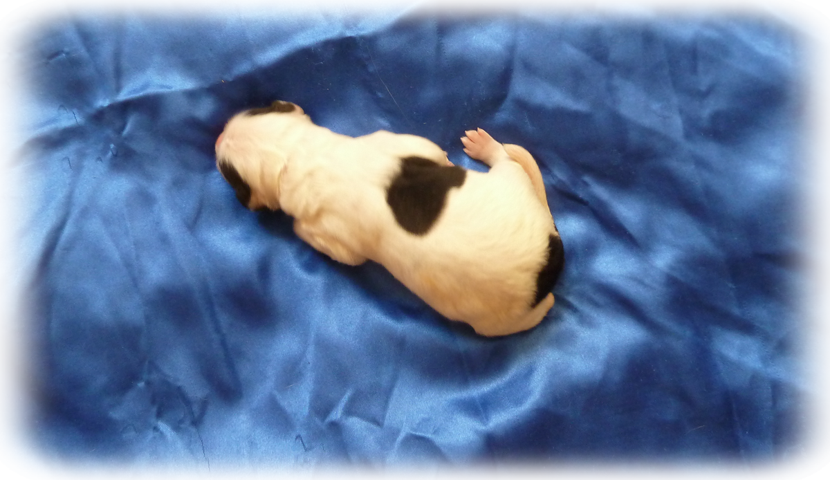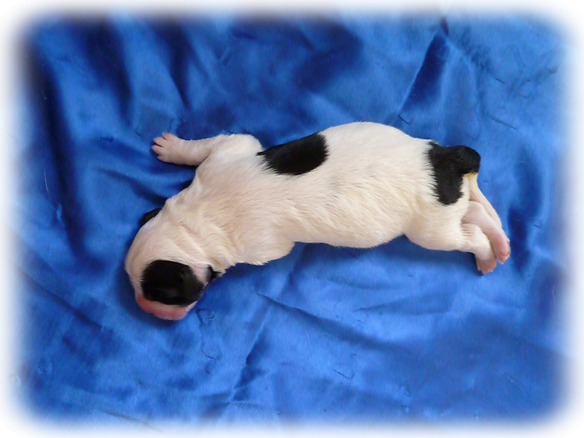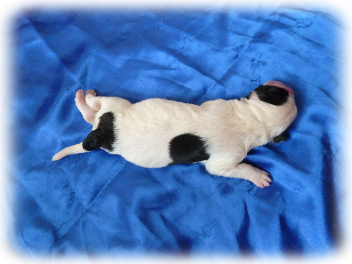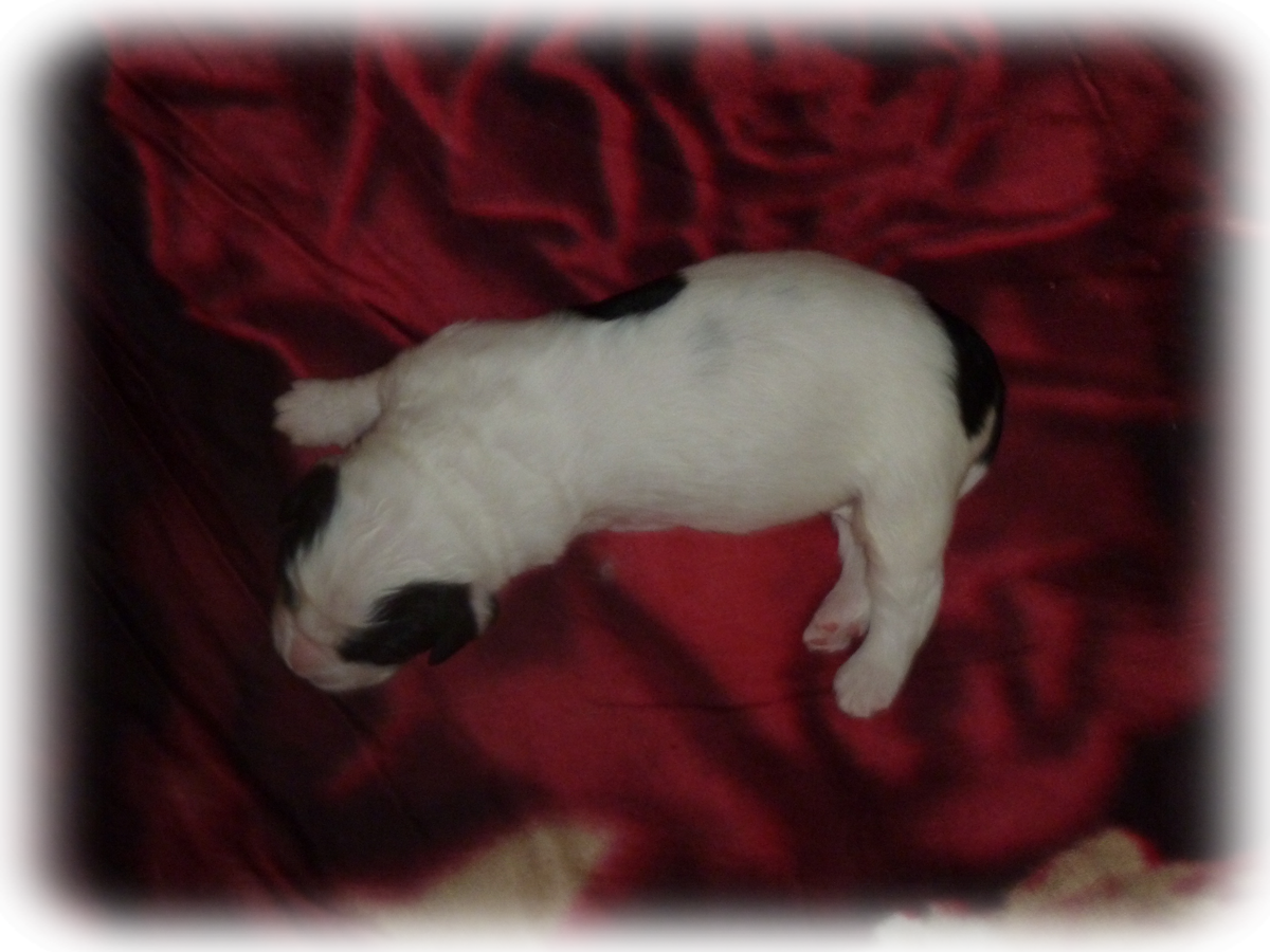 Hier ein paar Fotos von Landseerwelpe Nummer 1 im Alter von 1 Woche.