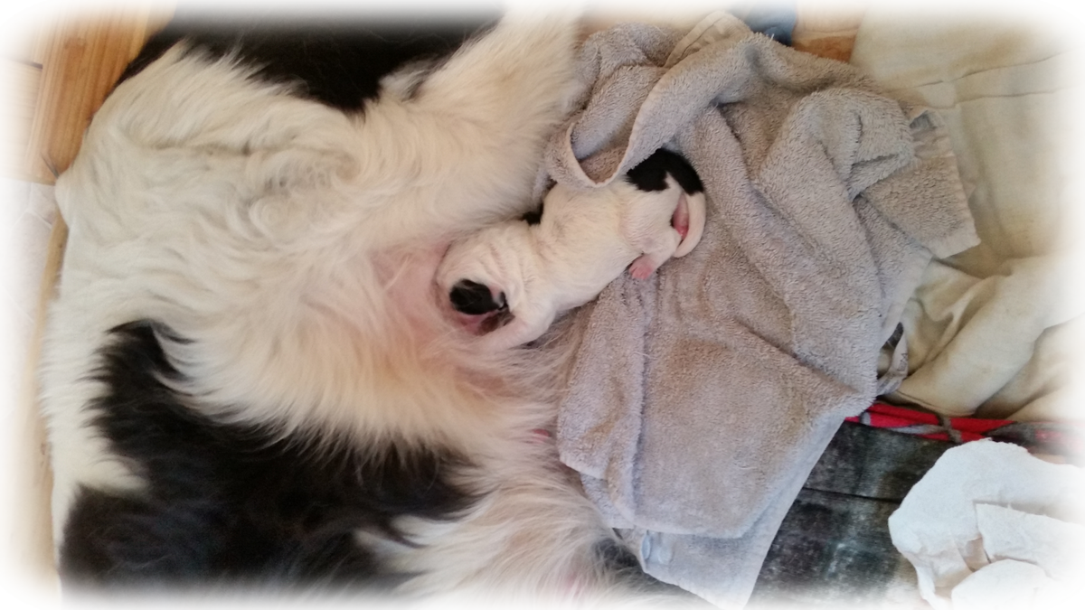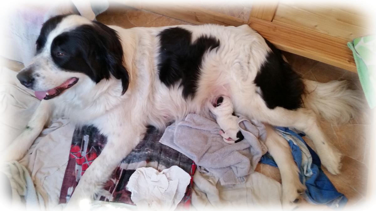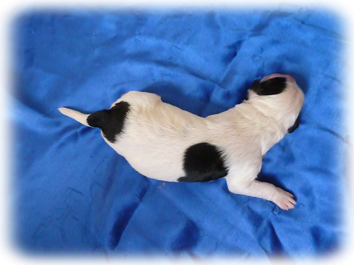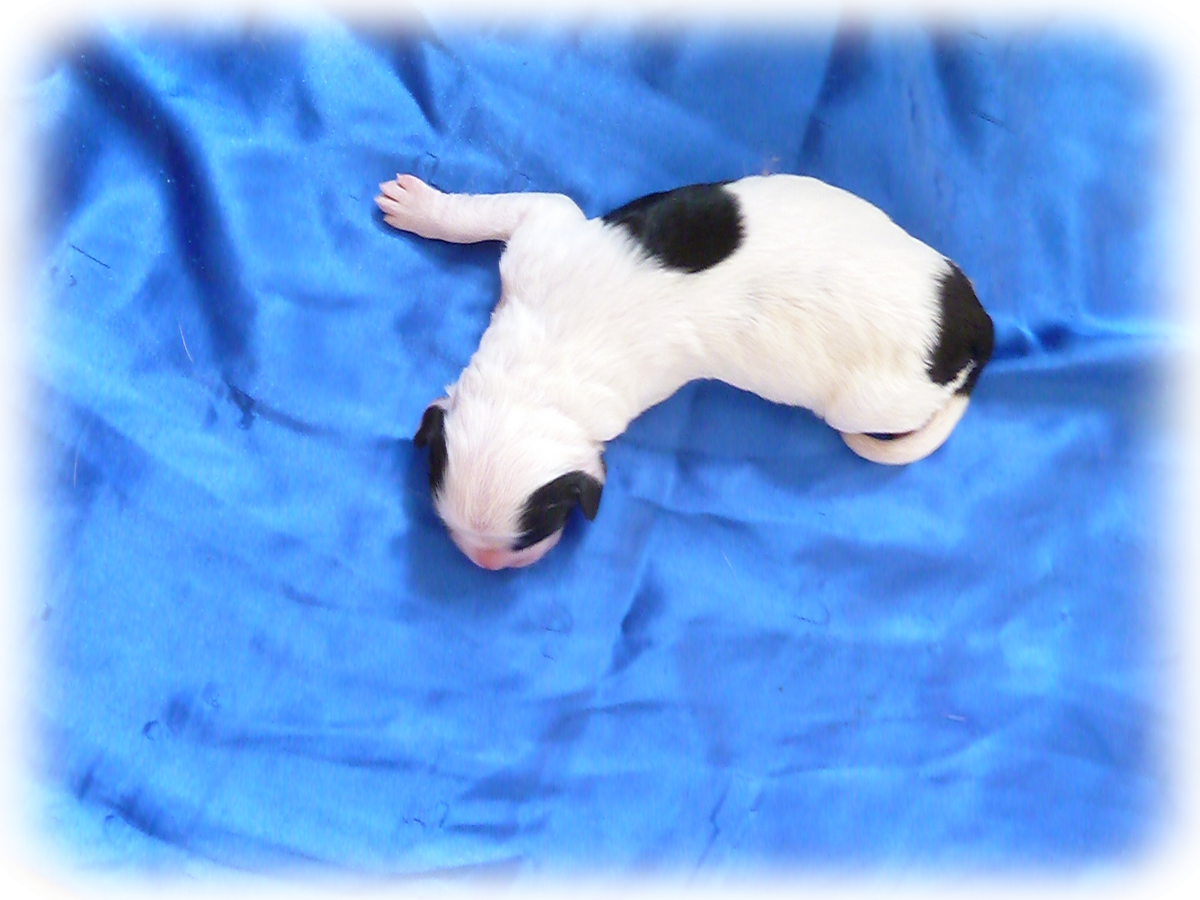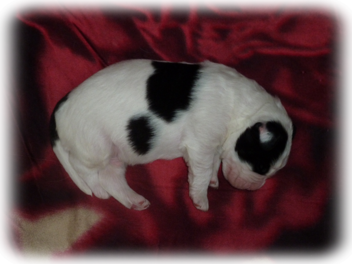 Hier ein paar Fotos von Landseerwelpe Nummer 1 im Alter von 1 Woche.
