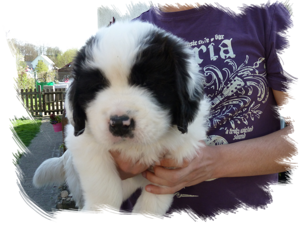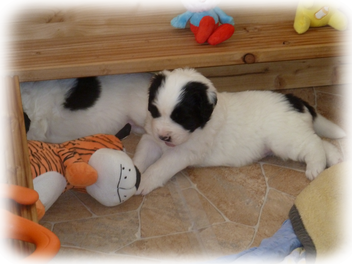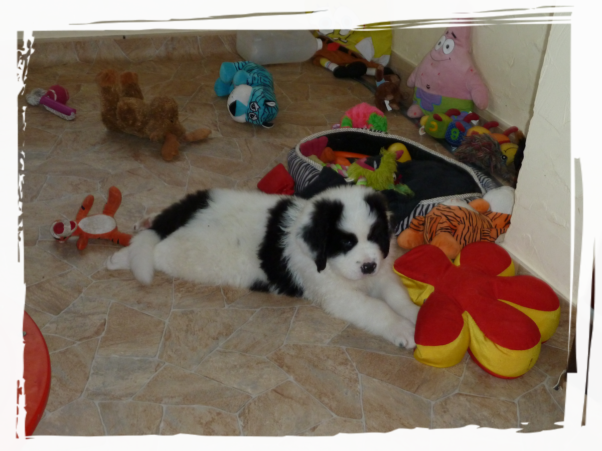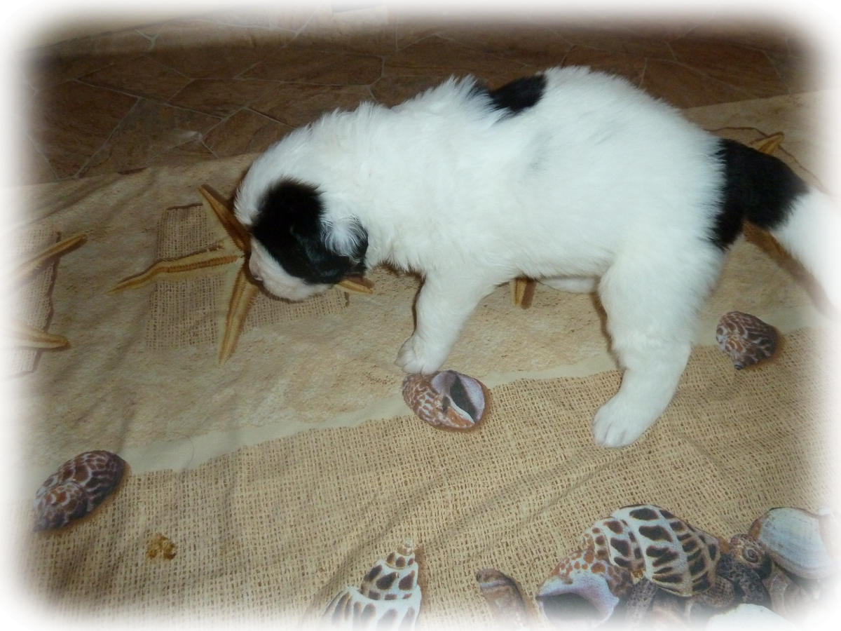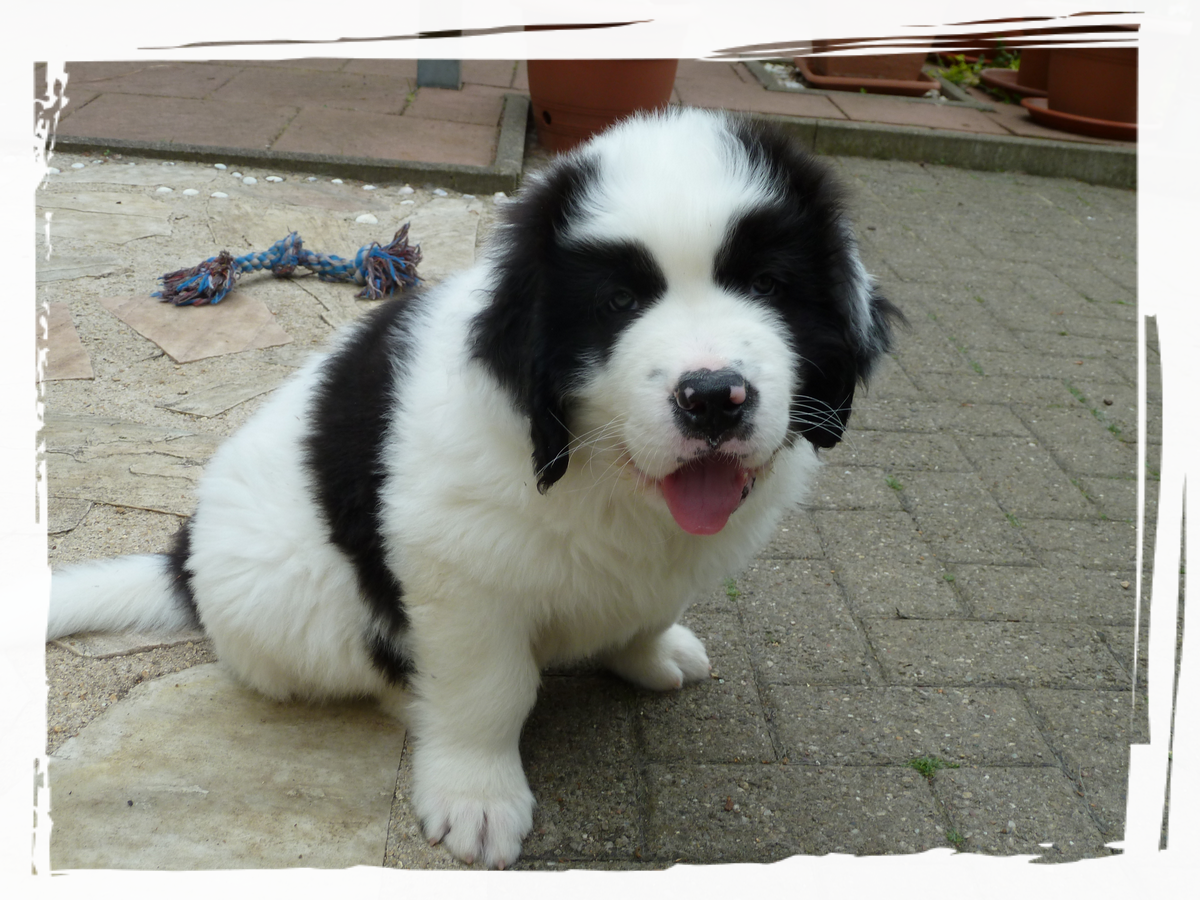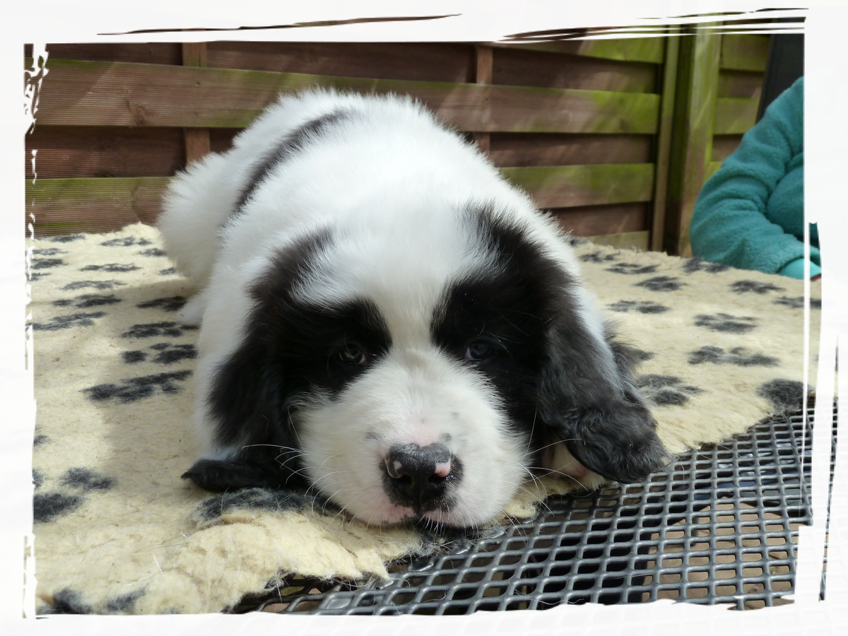 Hier ein paar Fotos von Landseerwelpe Nummer 1 in seiner 4.Lebenswoche.