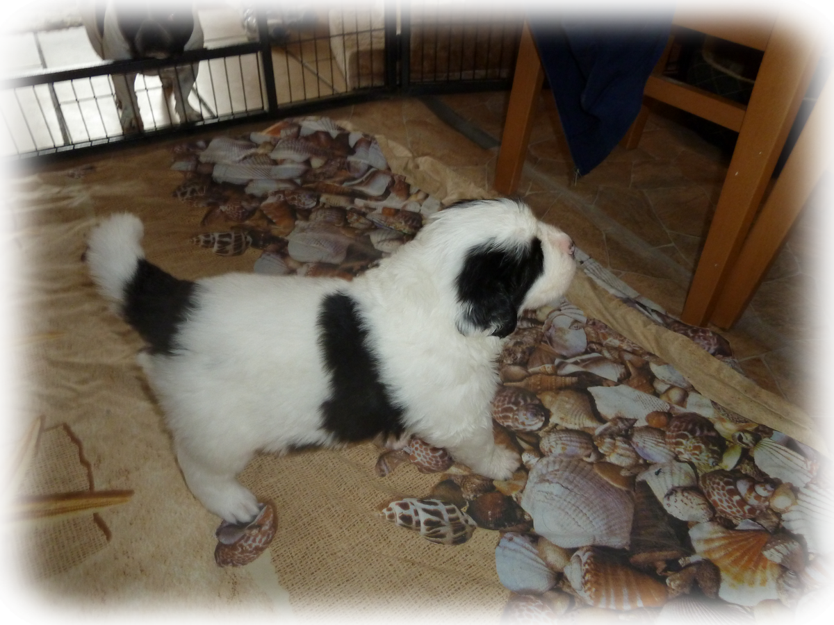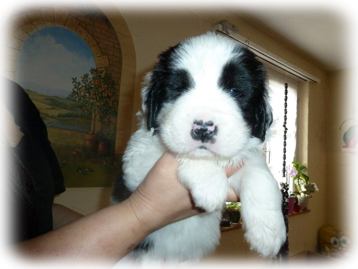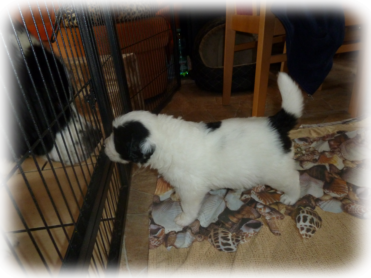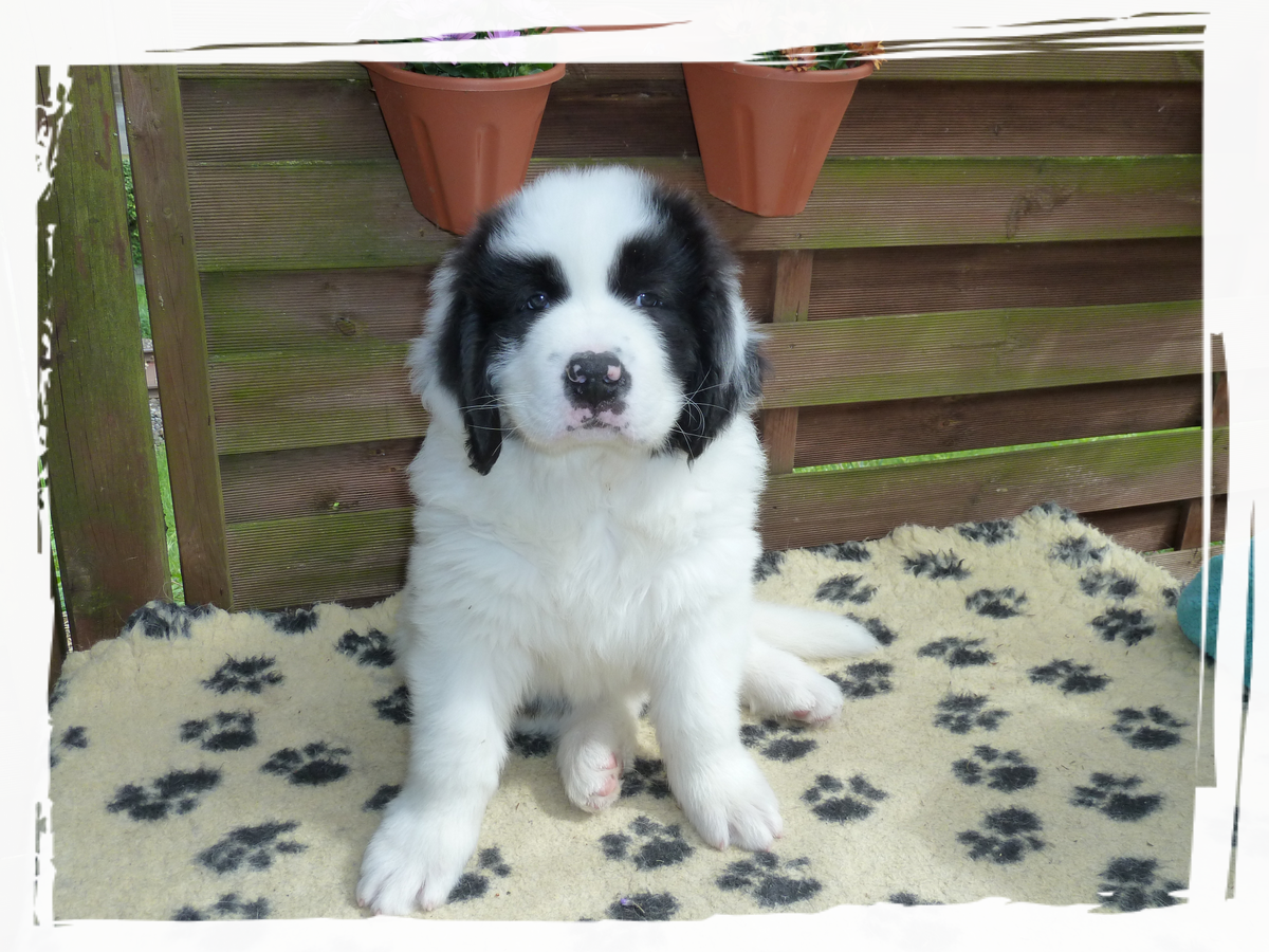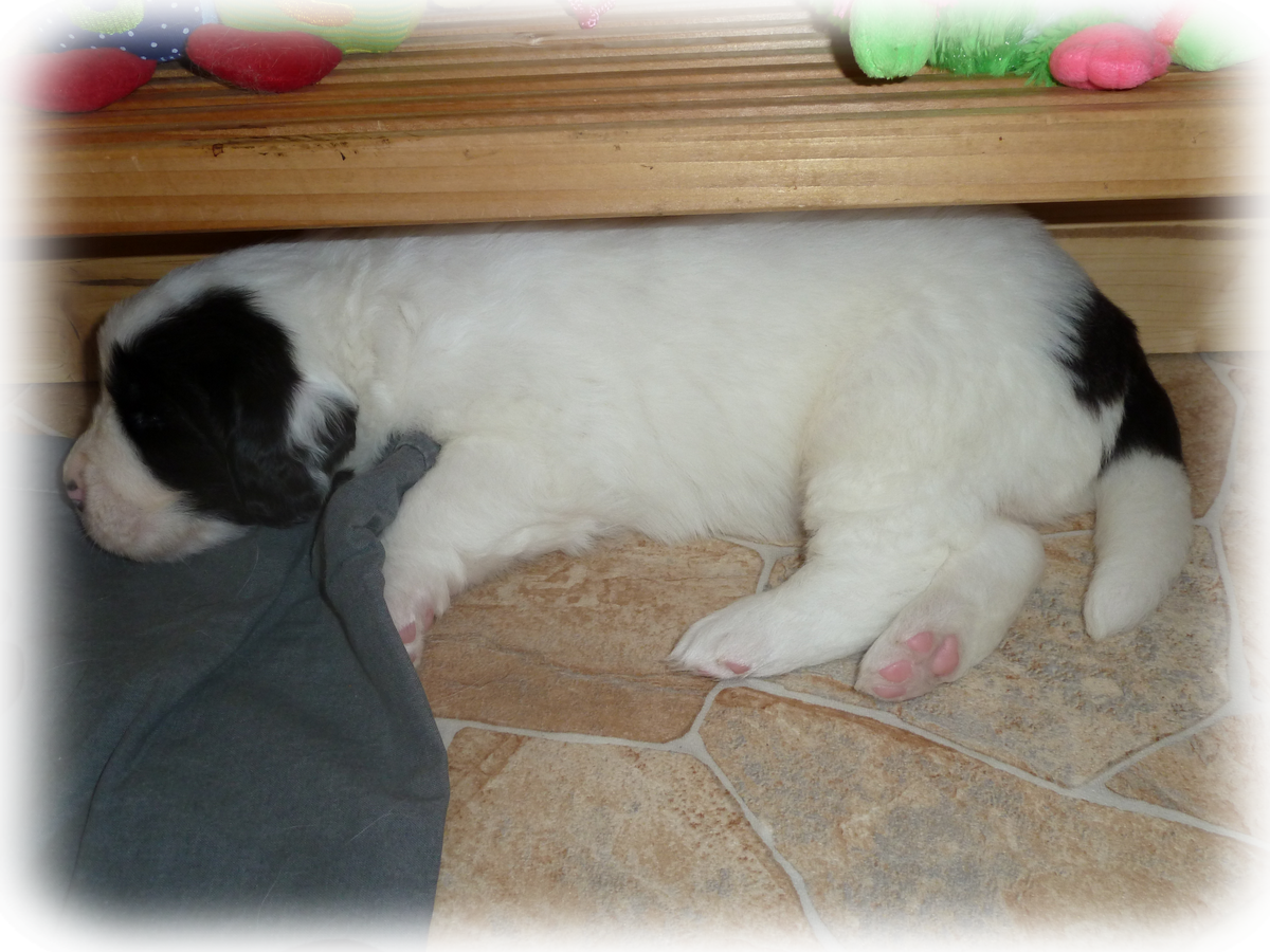Hier ein paar Fotos von Landseerwelpe Nummer 1 in seiner 4.Lebenswoche.