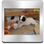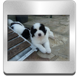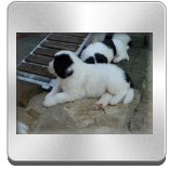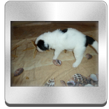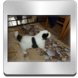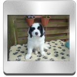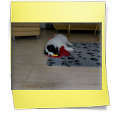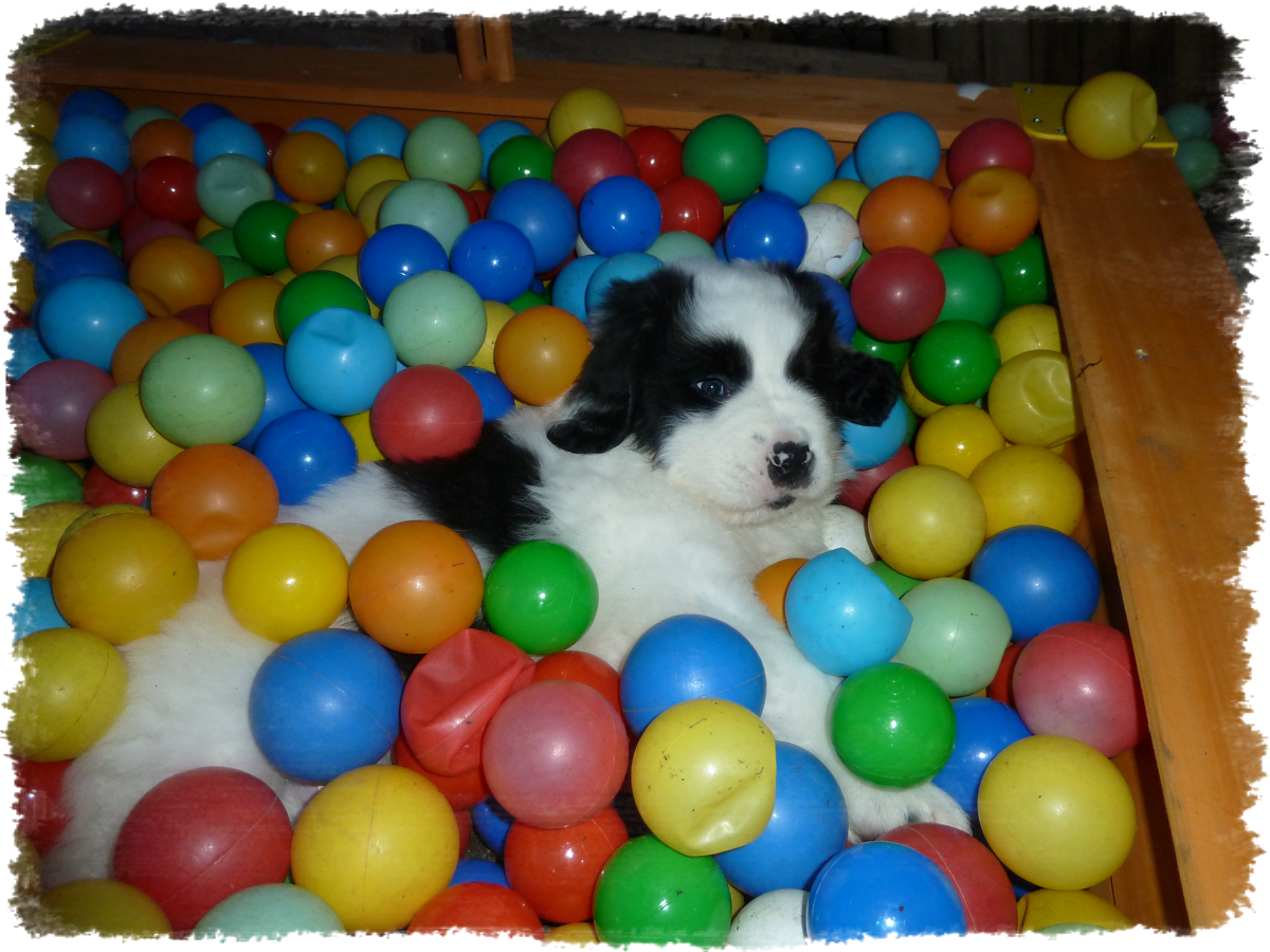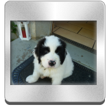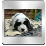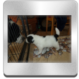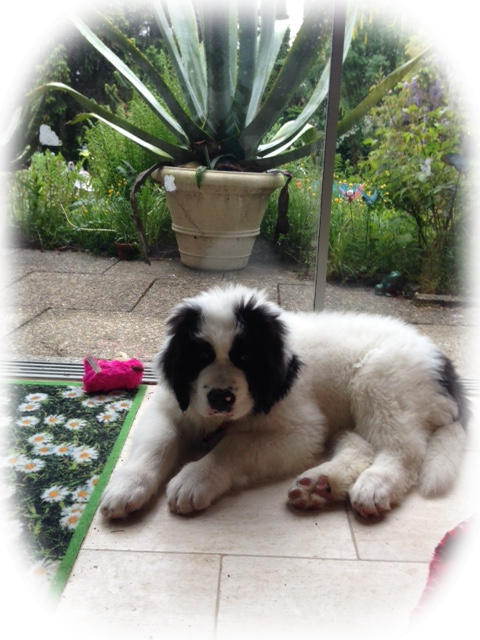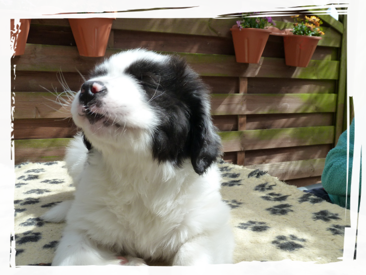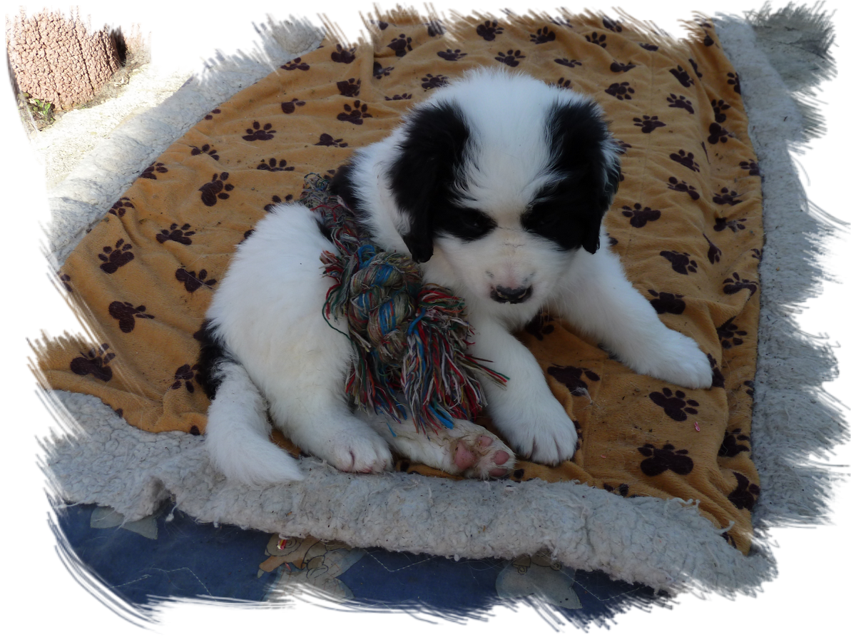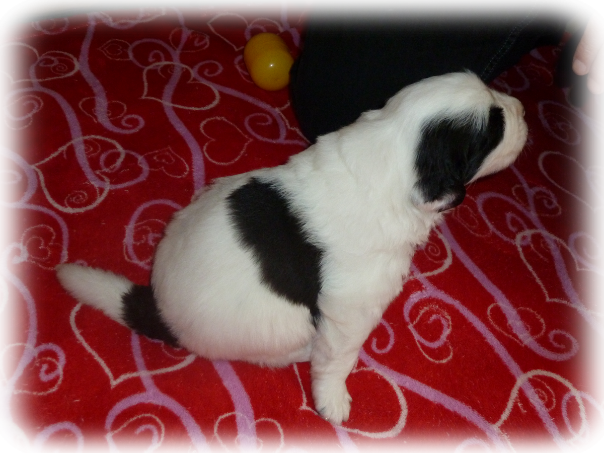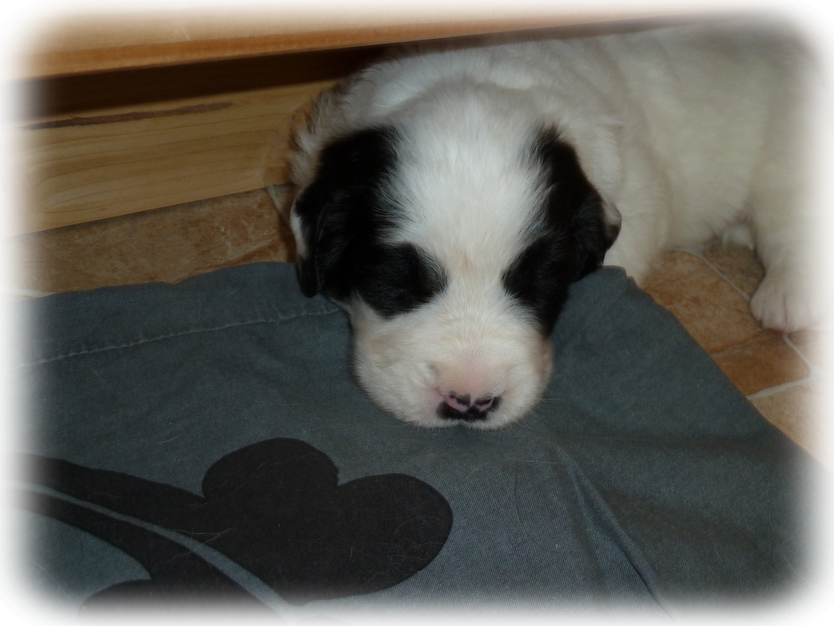 Hier ein paar Fotos von Landseerwelpe Nummer 1 in seiner 4.Lebenswoche.
