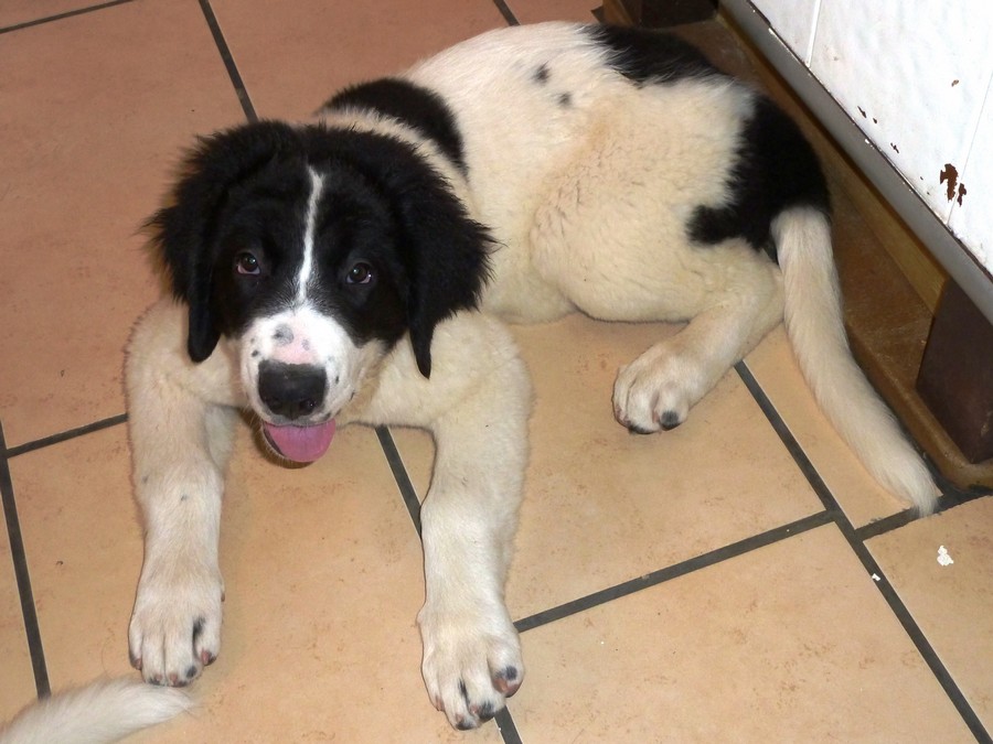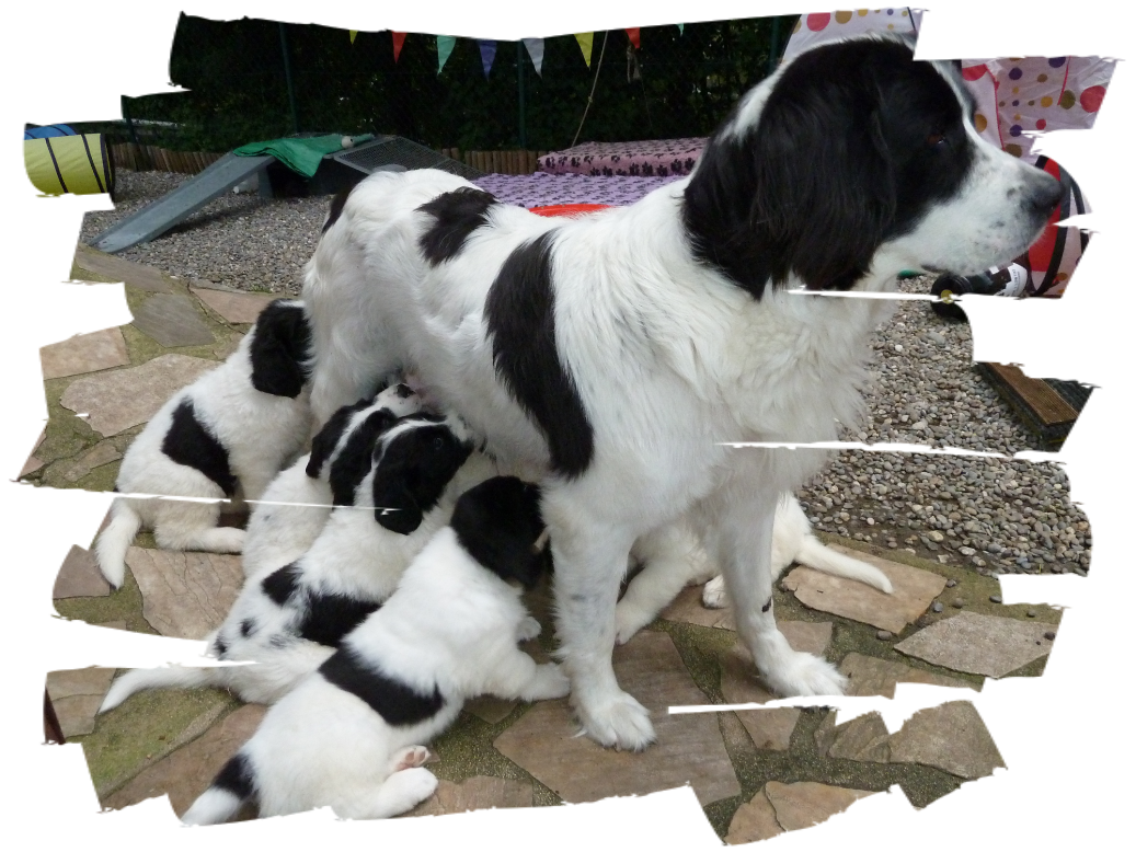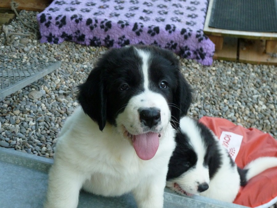 Landseerwelpen D-Wurf in ihrer vierten Lebenswoche