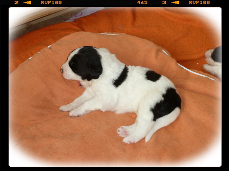 Unsere Landseer Welpen in der zweiten Lebenswoche. Sie öffnen nun die Augen und laufen in der Gegend herum