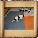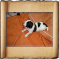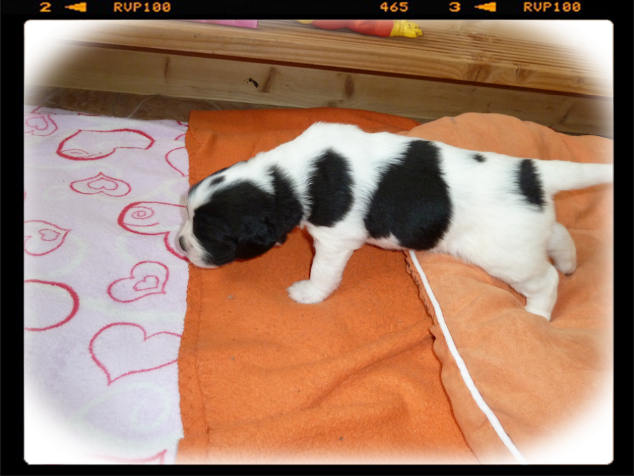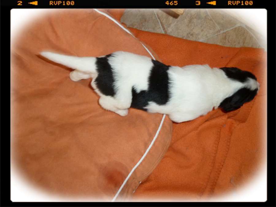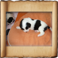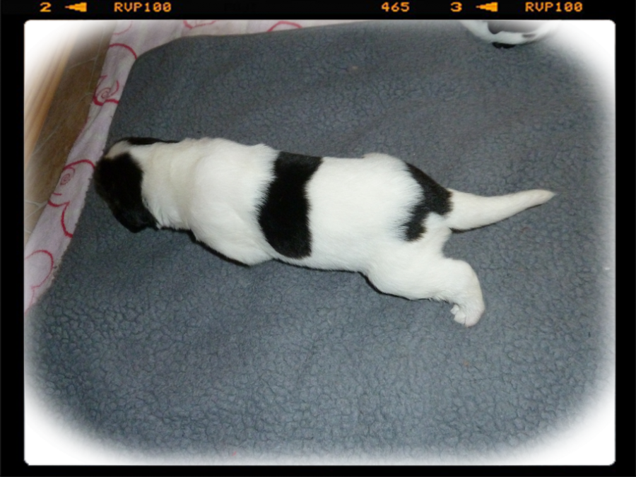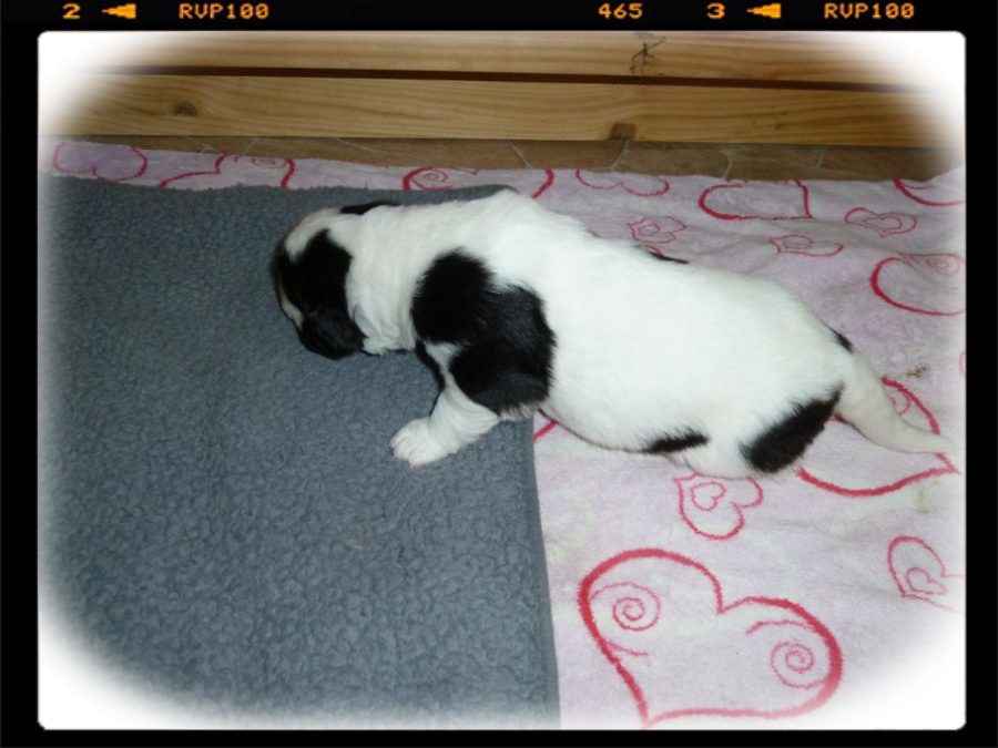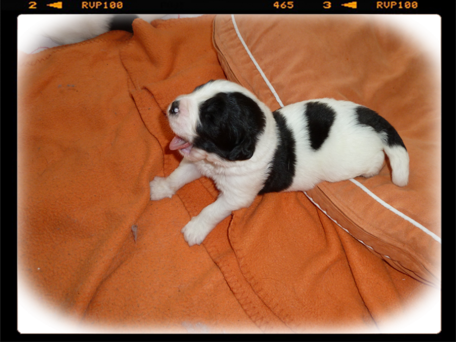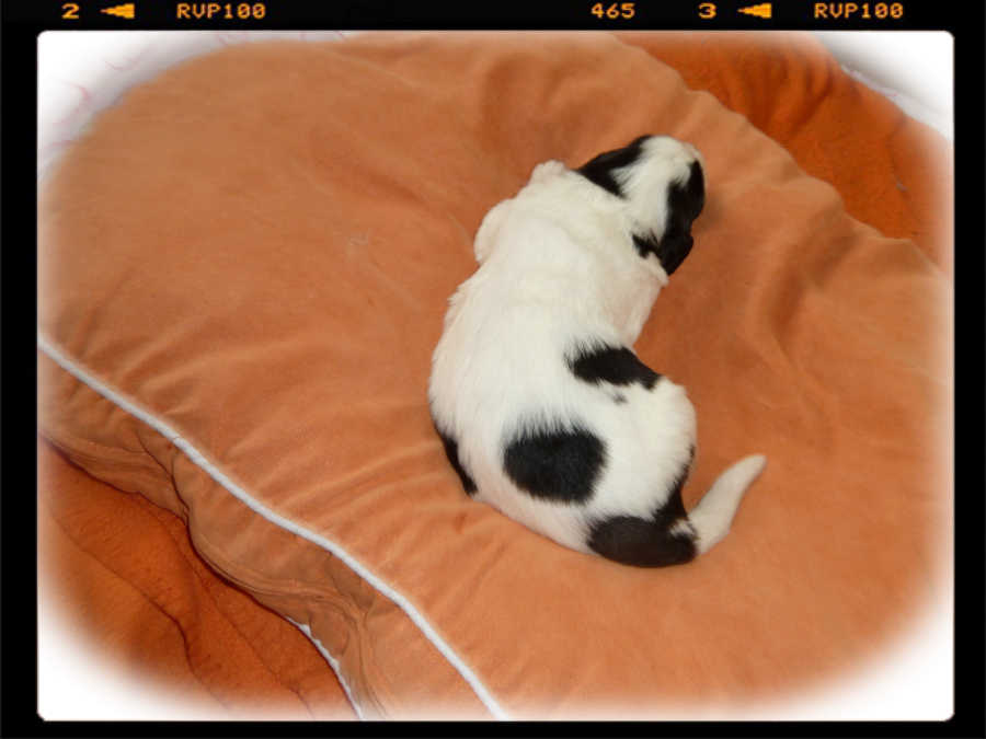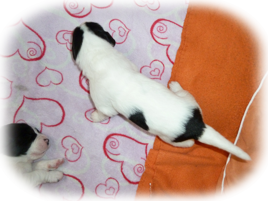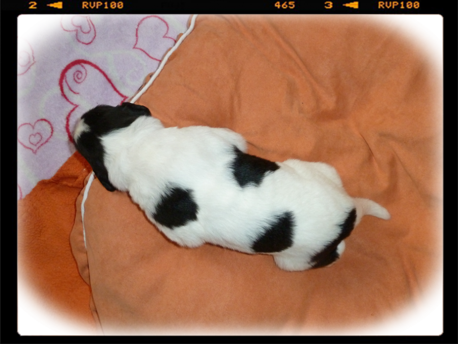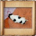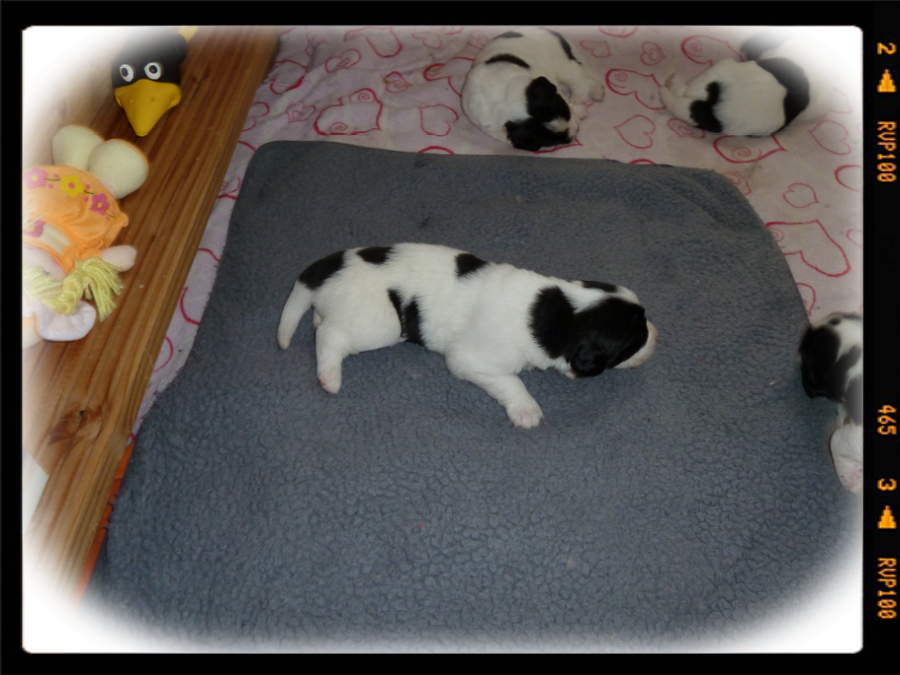 Unser 5. Welpe eine schön gezeichnete Hündin. Der Welpe kam um 03:40 Uhr zur Welt und er wog 630 Gramm.