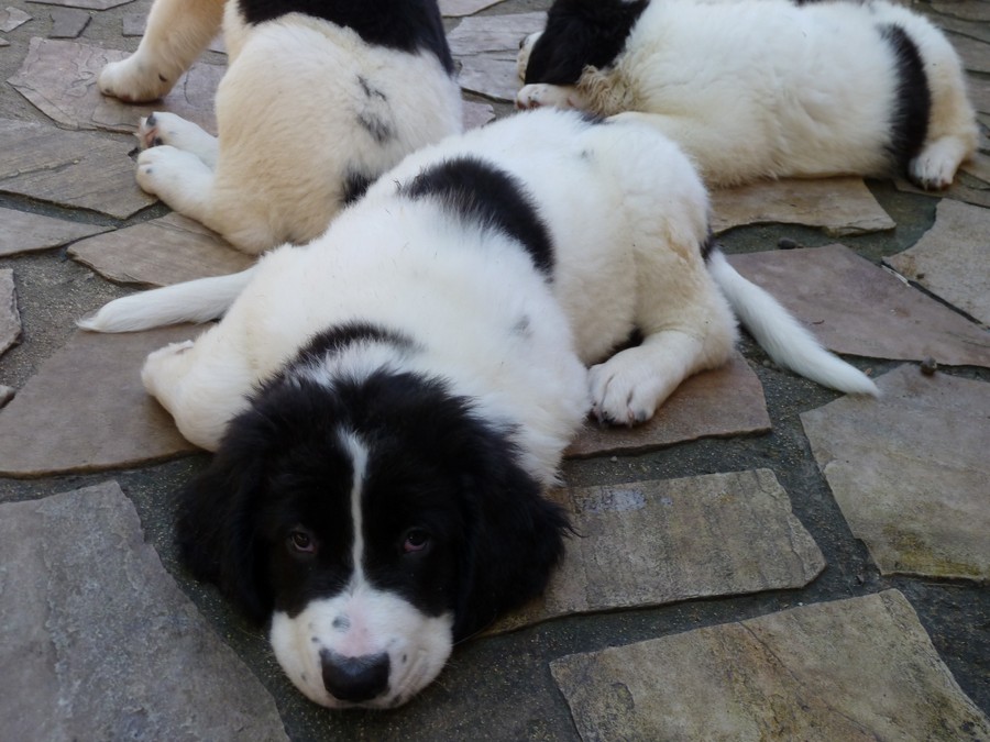 Landseerwelpen D-Wurf 6 + 7 Woche beim spielen