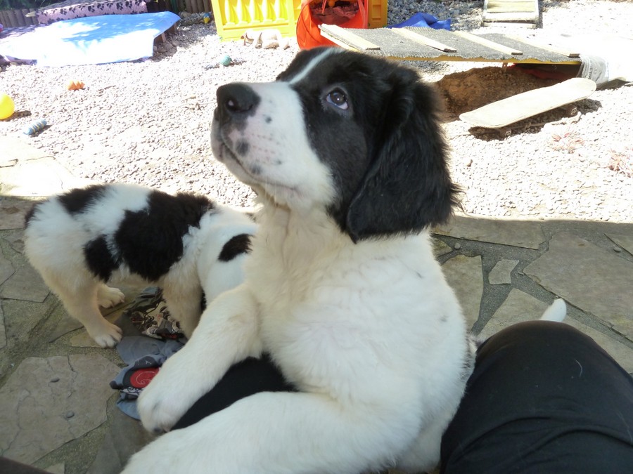 Landseerwelpen auf dem Spielplatz 9.Woche