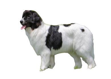 Landseerwelpen D-Wurf in ihrer fünften Lebenswoche