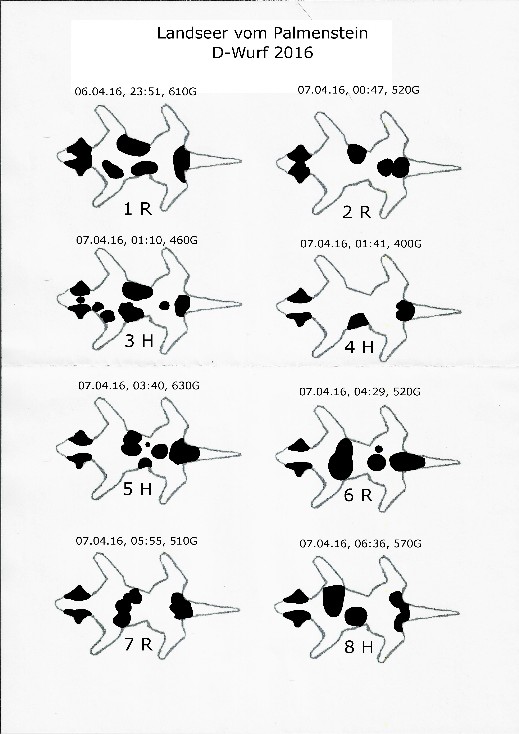 Er ist der Einzige der am 06.04.16 Geburtstag hat. Der Welpe kam um 23:51 Uhr zur Welt und er wog 610 Gramm.